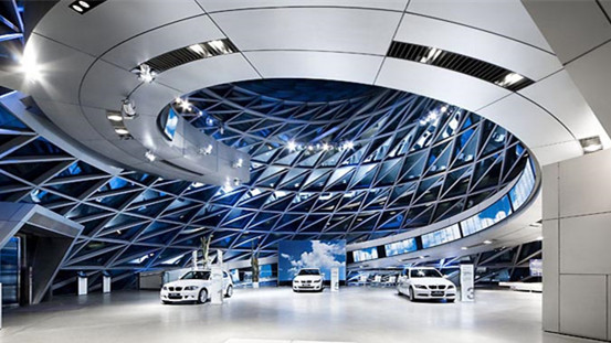 大型的汽车展厅需要使用动态变换的灯光以更好地展示在售的汽车。我们在舞台灯光领域的经验和出类拔萃的智能系统,使用我们成为了各种类型展厅的明确选择。上图显示的宝马展厅一共使用了800多个照明回路来控制所有的照明设备。